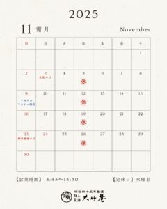 11月の定休日のお知らせ
