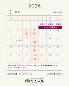 1月の定休日のお知らせ